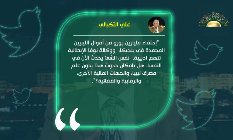تساءل عضو مجلس النواب، علي التكبالي، عما إذا كان من الممكن اختفاء 2 مليار يورو من الأموال الليبية المجمدة في بلجيكا دون علم مصرف ليبيا المركزي؟!