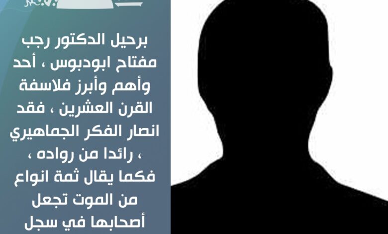 برحيل الأستاذ الدكتور رجب مفتاح أبودبوس ، أحد وأهم وأبرز فلاسفة القرن العشرين ، فقد انصار الفكر الجماهيري ، رائدا من رواده ، فكما يقال ثمة أنواع من الموت تجعل أصحابها في سجل الخالدين ، وأبودبوس أحد هؤلاء .