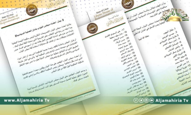 عاجل| 43 عضوا من مجلس النواب يدعون مجلس الدولة الإخواني لسرعة تسمية اللجان المتفق عليها لتعديل مسودة الدستور، ويدعون رئيس الحكومة المكلفة فتحي باشاغا، لسرعة تقديم تشكيلة الحكومة ويدعون البعثة الأممية والمجتع الدولي إلى احترام الشرعية الوطنية وعدم التدخل في الشأن الليبي. (بيان)