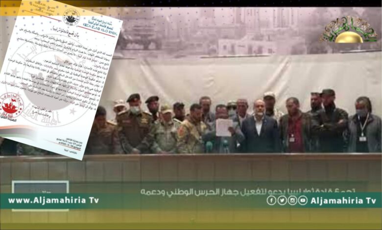 وقال ما يسمى “تجمع قادة ثوار ليبيا”، في بيان له طالعته “الجماهيرية”: “نؤكد أن أيدينا على الزناد، وإننا على أهبة الاستعداد للدفاع