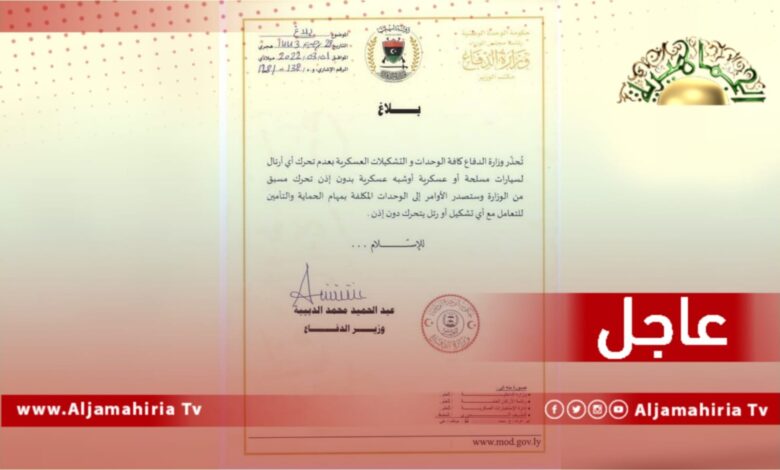 عاجل// الدبيبة: سنصدر أوامر للوحدات المكلفة بمهام الحماية والتأمين للتعامل مع أي تشكيل يتحرك دون إذن مسبق.