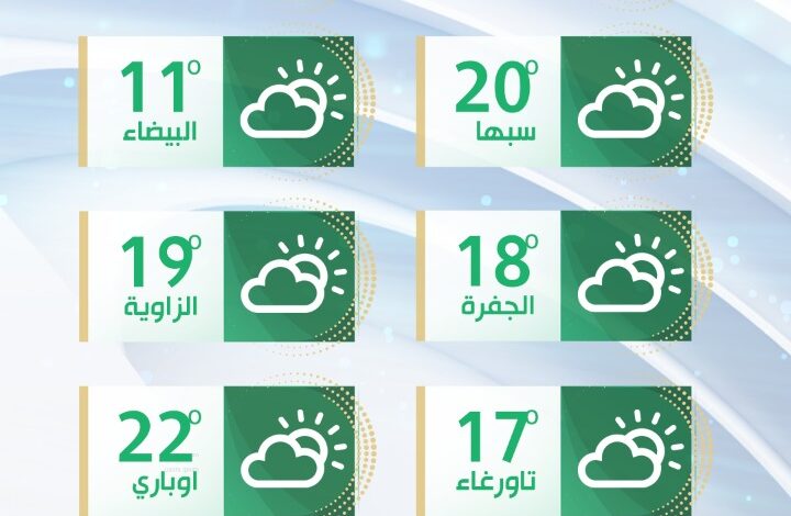 وجاء بيان الأحوال الجوية المتوقعة على ليبيا خلال الثلاثة الأيام القادمة، بداية من اليوم الخميس كالتالي:-