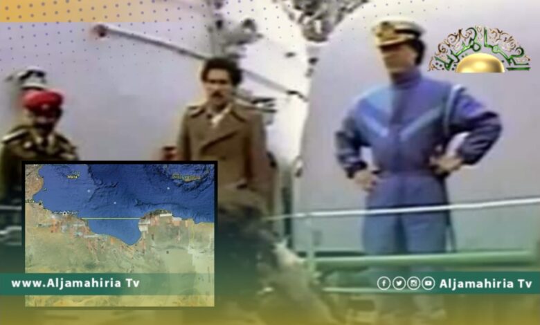 في هذه المناسبة خرج المناضل الشهيد معمر القذافي بزورق بحري لينتقل من مصراتة إلى بنغازي، ويُعلن أن من يتجاوز هذا الخط سوف يُقتل، كما رد على رولند ريغان الرئيس الأمريكي بضرب الطائرات الأمريكية التي اخترقت الخط 32.5 وأسقطت وقُتل الطيار الذي كان يقود الطائرة.