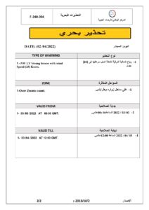 الرياح:  شمالية شرقية إلى جنوبية شرقية معتدلة إلى نشطة السرعة مما تسبب في إثارة الأتربة والرمال.