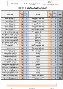 درجات الحرارة القصوى: تتراوح هذا اليوم مابين(32-36) مْ وتسجل ارتفاع بداية من يوم الغد.