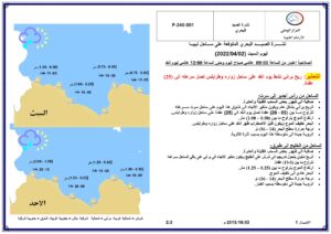 الرياح: شمالية شرقية معتدلة السرعة على المناطق الممتدة من رأس اجدير إلى الخمس وتكون جنوبية غربية على باقي المناطق وتتحول يوم الغد إلى شرقية نشطة السرعة مما قد تسبب في إثارة الأتربة والغبار.