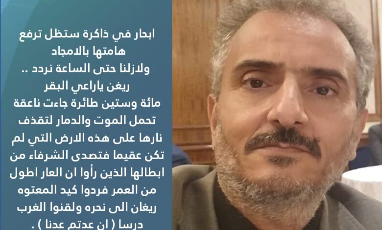 مائة وستين طائرة جاءت ناعقة تحمل الموت والدمار لتقذف نارها على هذه الارض التي لم تكن عقيما فتصدى الشرفاء من ابطالها الذين رأوا ان العار اطول من العمر فردوا كيد المعتوه ريغان الى نحره ولقنوا الغرب درسا ( ان عدتم عدنا ) .
