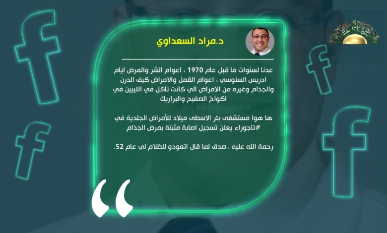 وتابع د.مراد السعداوي: “ها هو مستشفى بئر الأسطى ميلاد للأمراض الجلدية في تاجوراء يعلن تسجيل إصابة مثبتة بمرض الجذام”