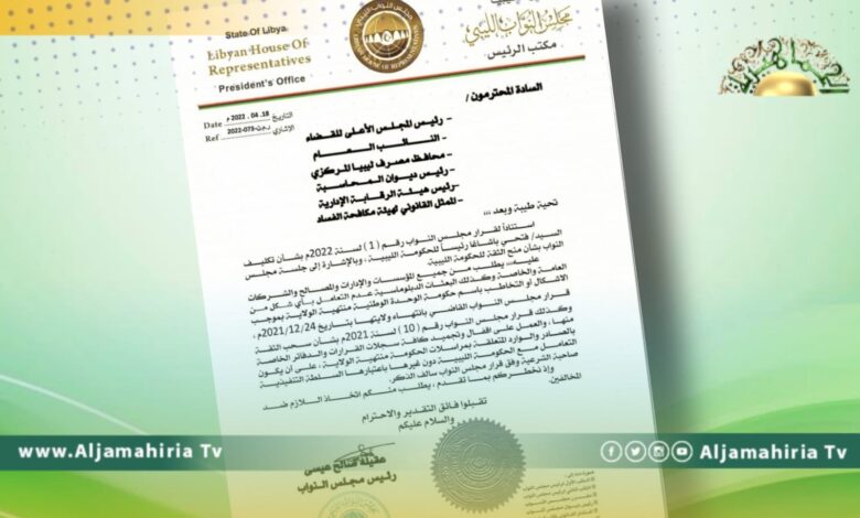 ديسمبر 2021.م وكذلك قرار مجلس النواب رقم 10 لسنة 2021.م بشأن سحب الثقة منها والعمل على إقفال
