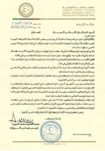 وقال الدبيبة في رسالة وجهها إلى النائب العام بأن اتهامات قرقاب بأنه كان وراء توقيفه من قبل الأجهزة الأمنية زور وباطل، كما أنه نفى أن يكون طلب منه توقيع عقد “معين”، مؤكدا عدم ارتباط ذلك بإقالته.