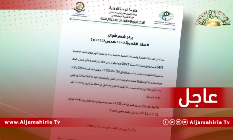 عاجل| المركز الليبي للاستشعار عن بعد وعلوم الفضاء: فلكيا عيد الفطر يوم الإثنين