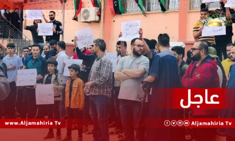 وقفة احتجاجية أمام مديرية أمن مسلاتة للمطالبة بالإفراج الفوري عن أفراد تابعين للمديرية ألقي القبض