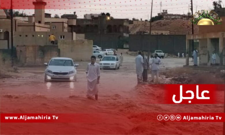 سقوط أمطار غزيرة الآن على بني وليد وسط كتلة هوائية باردة على أغلب مناطق ليبيا.
