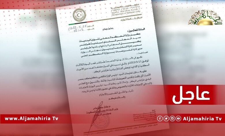 عاجل// الدبيبة يصدر تعليماته بحصر الأضرار وتقدير التعويضات المناسبة بالتنسيق مع المجلس البلدي طرابلس