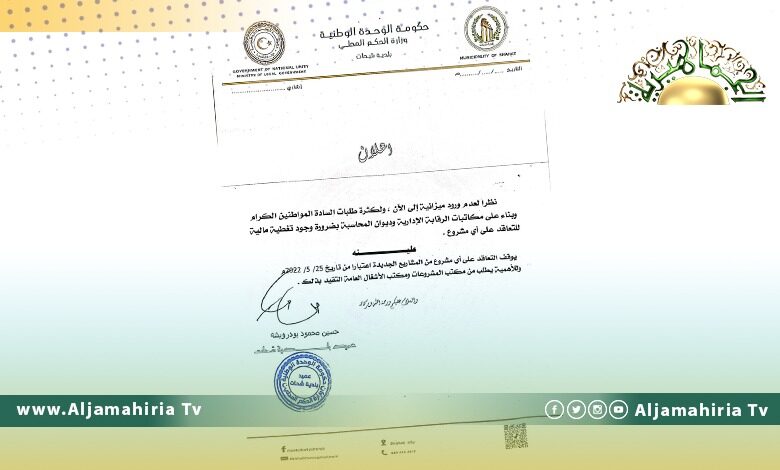 أوقفت بلدية شحات التعاقد على أي مشروع من المشروعات الجديدة، مرجعة ذلك إلى عدم ورود ميزانية.