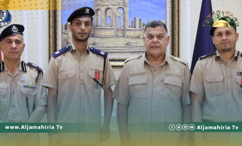 وأوضحت الوزارة أنه تم تكريم كل من الرائد “محمد سعد الزروق”، والنقيب “حسام عبد الفتاح البرعصي”، والموظف “محمد ميلاد بنغازي” التابعين لفرع جوازات بنغازي، لأنهم ضحوا بأنفسهم إبان الاشتباكات المسلحة بسوق الحوت ببنغازي 2017م أثناء إخراجهم لطابعة الجوازات، حيث تعرضوا لانفجار لغم نتج عنه إصابات جسيمة للأول والثالث، وبتر قدمي الثاني.