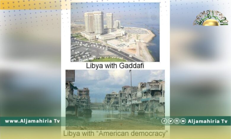 وكتبت السفارة تعليقا أسفل الصورة الأولى “ليبيا في عهد العقيد معمر القذافي” بينما ذيلت الصورة الثانية بعبارة “ليبيا بعد الديمقراطية الأمريكية”، ناقلة عن وزير الخارجية الروسي سيرغي لافروف قوله: الناتو يشكل تهديدًا ويُدمر البلاد.