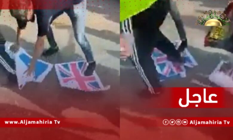 عاجل| المتظاهرون في الساحة الخضراء بـ طرابلس يدوسون بأقدامهم أعلام دول حلف الناتو التي تدخلت في ليبيا عام 2011.