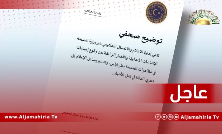 عاجل| صحة “الوحدة المؤقتة” تنفي وقوع وفيات خلال تظاهرات الجمعة بطريق السكة أمام مقر مجلس الوزراء.