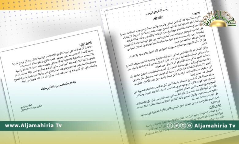 هذا ما ورد في نص بيان مبادرة المترشح الرئاسي سيف الإسلام القذافي: