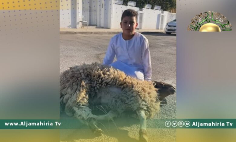 تداول رواد صفحات التواصل الاجتماعي فيديو لطفل يؤكد أن ثواب هذه الأضحية موهوب للقائد الشهيد معمر القذافي.