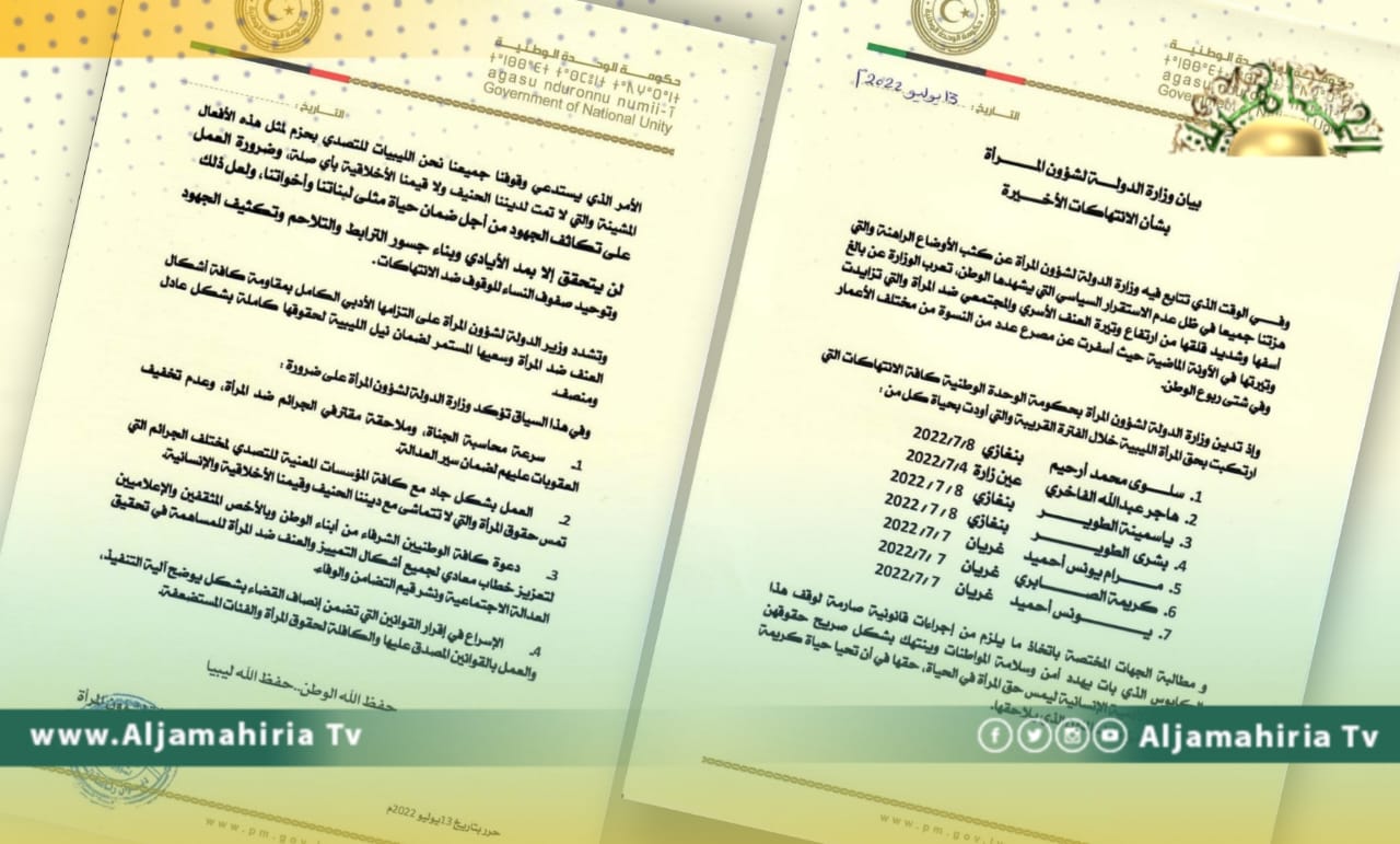 أصدرت وزارة الدولة لشؤون المرأة بحكومة الوحدة المؤقتة، الأربعاء، بيانا بسبب تفشى ظاهرة العنف ضد المرأة التي لوحظت مؤخرا.