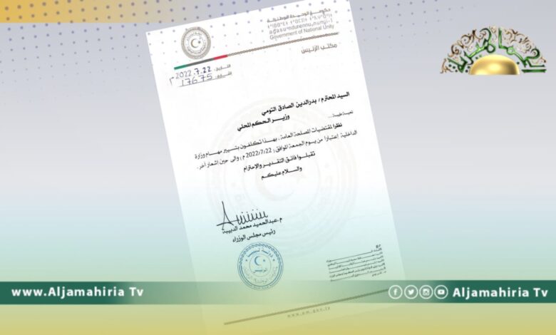 ووجه رئيس حكومة الوحدة المؤقتة، خطابا إلى التومي، بتسيير وزارة الداخلية إلى حين إشعار آخر، وذلك نظرًا لما تقتضيه المصلحة العامة، بحسب نص الخطاب.