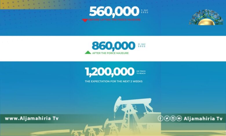 أعلنت مؤسسة النفط ارتفاع حجم الإنتاج إلى 860 ألف برميل يوميا بعد أن 560 ألف برميل قبل إعادة فتح الحقول.