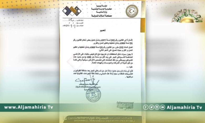 بغرض منح امتيازات.. حكومة الدبيبة تقوم بتعديل قانون البناء للاراضي المتاخمة لشواطىء البحر