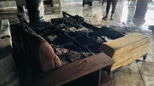 وأظهرت صورا تداولها رواد وسائل التواصل الاجتماعي، أنه تم تخريب وتكسير وحرق المكان بالكامل من قبل مجهولين .