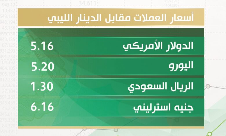 أسعار صرف الدولار والعملات الأجنبية والعربية مقابل الدينار الليبي اليوم الأحد
