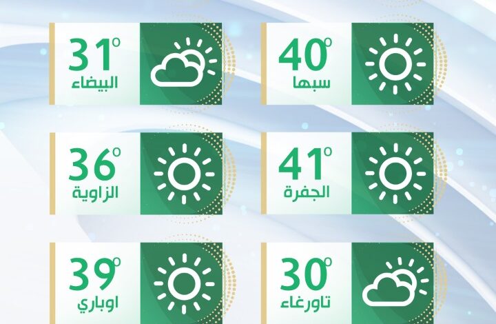 الأرصاد الجوية: درجات الحرارة مرتفعة على أغلب مناطق ليبيا وتسجل تراجعا بداية من الغد