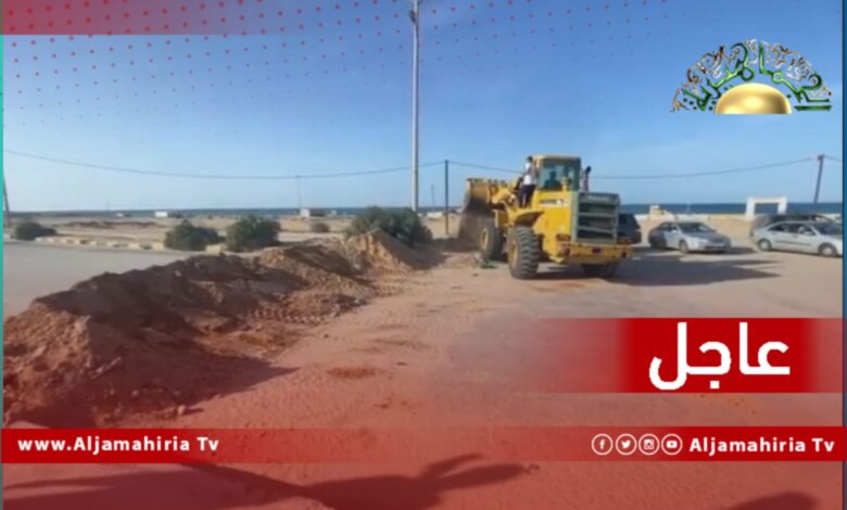 البدء في إزالة السواتر الترابية من جهة طريق جزيرة اسبان بتاجوراء