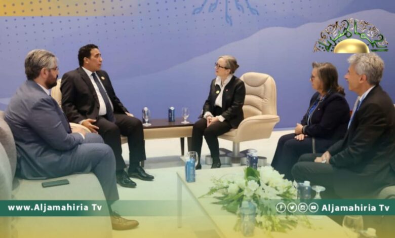 المنفي يلتقي رئيسة الحكومة التونسية على هامش قمة شرم الشيخ.. هذا ما دار بينهما