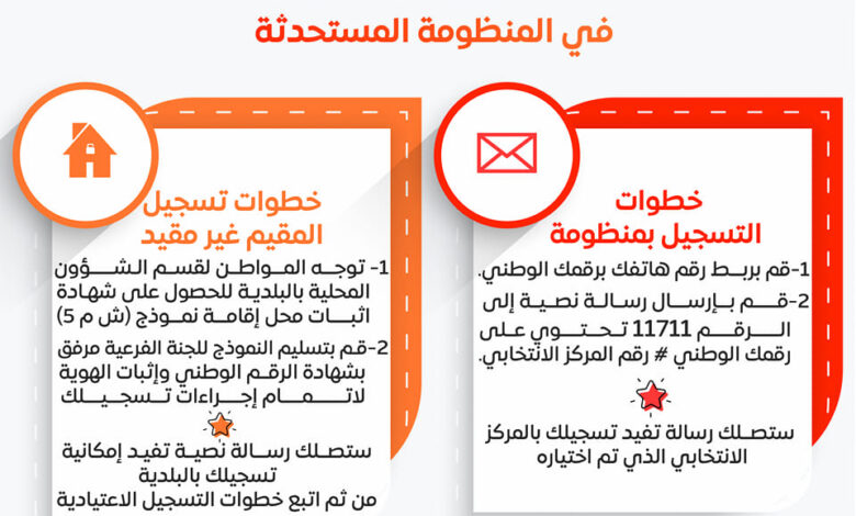 وحثت اللجنة المركزية، المواطنين الراغبين في ممارسة حقهم الانتخابي والمسجلين في السابق بضرورة إعادة تسجيل أنفسهم كناخبين عبر المنظومة المستحدثة، وذلك بإرسال رسالة نصية على الرقم 11711 تحتوي على رقمك الوطني رقم المركز الانتخابي، علمًا بأن التسجيل مستمر و سيتم الإعلان عن موعد إقفال سجل الناخبين لاحقًا.