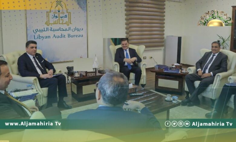 بحث رئيس ديوان المحاسبة خالد شكشك، مع رئيس حكومة الوحدة المؤقتة عبد الحميد الدبيبة الصعوبات التي تواجه الحكومة في سبيل تنفيذ واستكمال المشروعات الخدمية الضرورية للمواطنين.
