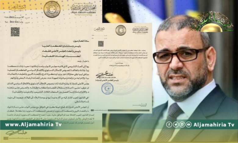 وقال المشري، إنه لا يعتبر القانون من ضمن الصلاحيات التشريعية، وأن استحداث محكمة دستورية هو “شأن دستوري”، وهو إجراء يزعزع الثقة بين المجلسين، ويهدم جهود الوصول إلى توافق حول المسار الدستوري، ويعمق الانقسام المؤسسي في البلاد.