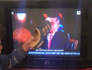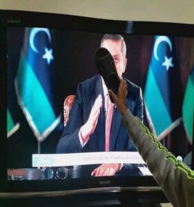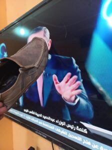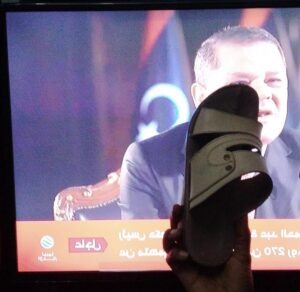 بالصور// تفاعل المواطنين مع خطاب الدبيبة بالشباشب والأحذية