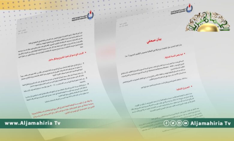 مؤسسة النفط تصدر بيانًا بخصوص تغيير نسبة المشاركة مع إيني الإيطالية