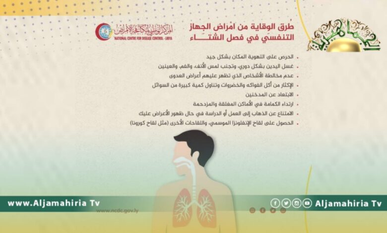 وتابع مركز مكافحة الأمراض، تكثر أمراض الجهاز التنفسي في فصل الشتاء، نتيجة الاسباب والعوامل منها ضعف مناعة الجسم في الشتاء، نتيجة تغير درجات الحرارة، كثرة تواجد الفيروسات في الجو، وكثرة حدوث نزلات البرد في الشتاء، وعدم علاجها بشكل فعال مسببة لأمراض مختلفة للجهاز التنفسي.