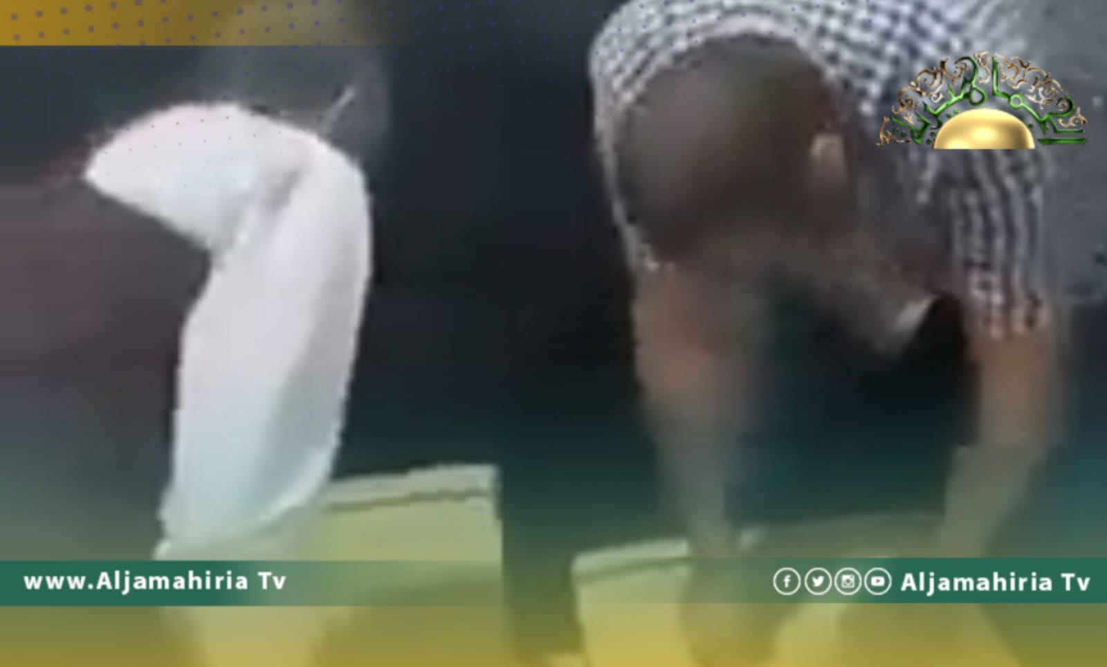 وأظهر الفيديو مدير المصرف بالمنطقة الجنوبية إسماعيل الغواري، يقوم بفحص عدد من الصناديق.