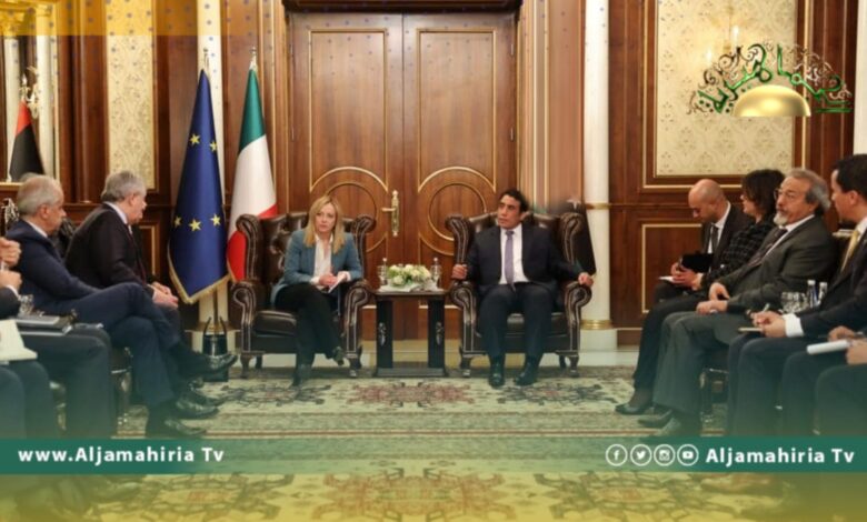 جاء ذلك خلال لقاء المنفي، مع رئيسة وزراء إيطاليا، جيورجيا ميلوني، رفقة وزير الشؤون الخارجية، أنطونيو تاياني، وزير الداخلية ماتيو بيانتيدوسي، كما تم مناقشة سُبل التعاون المشترك لمكافحة الهجرة غير الشرعية وتفعيل إتفاقية الصداقة بين البلدين.