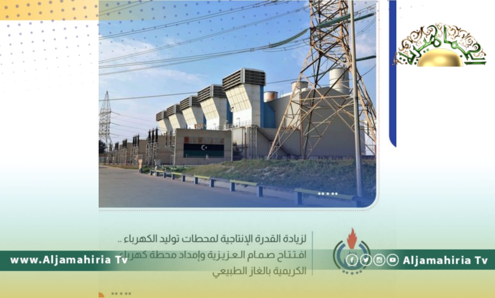 فتح اليوم الثلاثاء الصمام LVS 5 ( الواقع بمنطقة سيدي السايح) وإمداد محطة كهرباء الكريمية ( المسؤولة عن تزويد محطة كهرباء جنوب طرابلس) بالغاز الطبيعي وذلك عن طريق خط الغاز الساحلي الذي يتغذى من محطة كبس الغاز الرئيسية بالبريقة ..