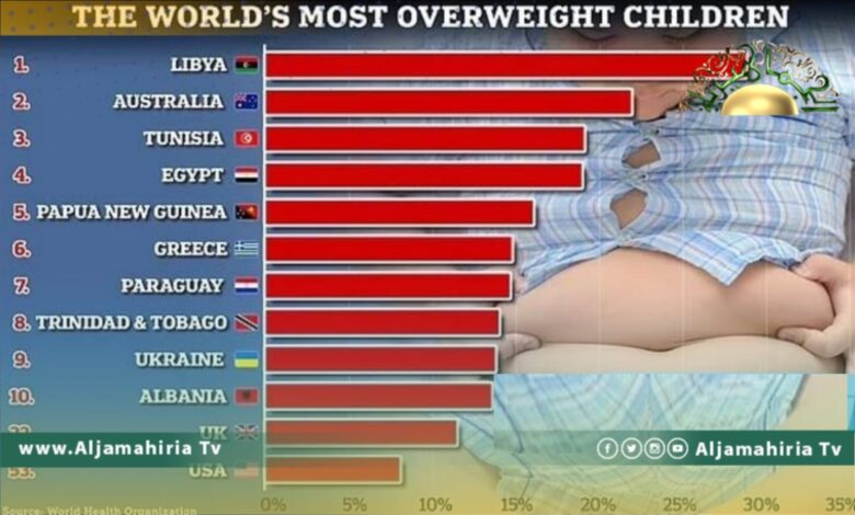 أفادت منظمة الصحة العالمية، بأن ليبيا تصدرت قائمة العشرة الأوائل، من حيث الأطفال الذين يعانون من زيادة الوزن في عام 2022، بسبب النظام الغذائي غير الصحي.