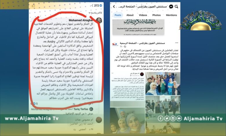 وفي سياق متصل، أكدت مصادر مطلعة، نشوب خلاف بين إدارة مستشفى العيون طرابلس، وجهاز دعم وتطوير العلاج، على خلفية منشور عن نجاح عملية معقدة لطفل ليبي، نشر على الصفحة الرسمية للجهاز وتجاهل الإشارة لمستشفى العيون وإدارته وأطقمه الطبية.