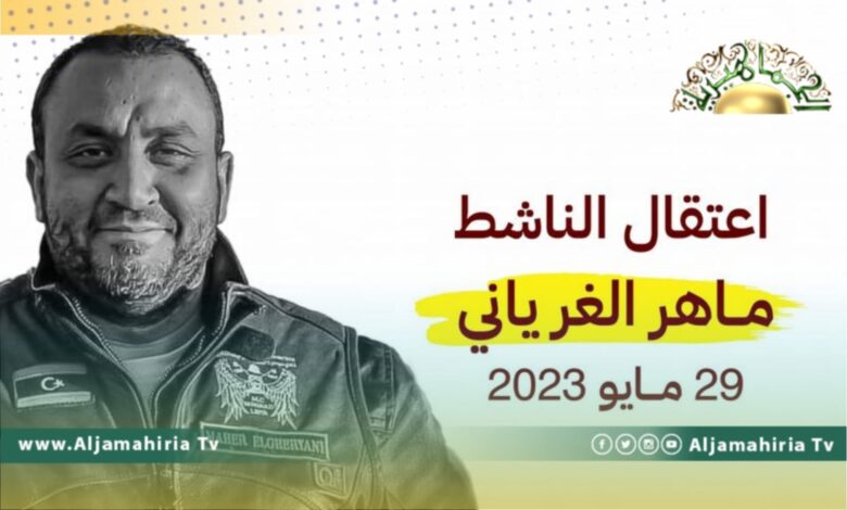 دانت منظمة رصد الجرائم الليبية اعتقال الناشط ماهر حمد الغرياني، الأحد 29 مايو، بعد استدعائه للتحقيق من قبل قوات تتبع الكرامة.