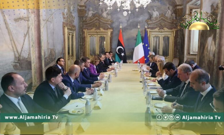 جاء ذلك خلال لقاء وفد حكومة الوحدة برئاسة عبدالحميد الدبيبة، مع الحكومة الإيطالية برئاسة رئيسة الوزراء “جورجيا ميلوني”.