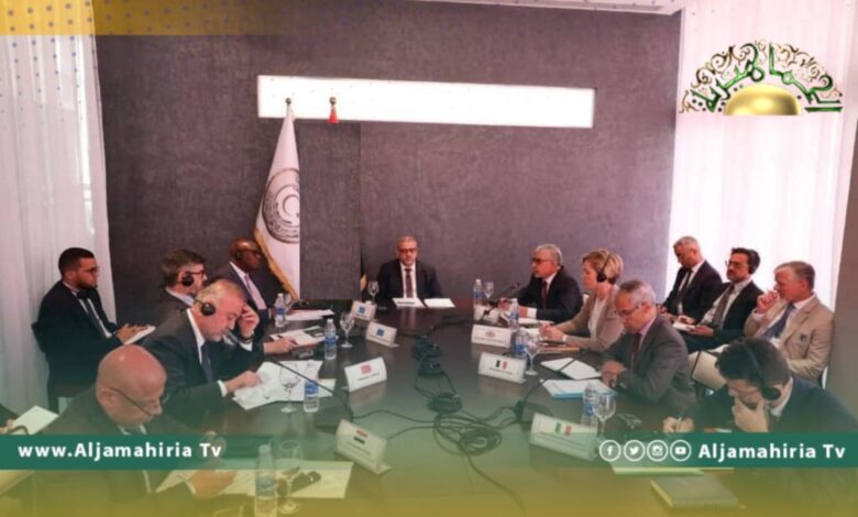 وحضر الاجتماع كلا من نائب المبعوث الأممي إلى ليبيا ريزيدون زينينغا، وسفير الاتحاد الأوروبي، خوسيه ساباديل، والسفيرة البريطانية، كارولين هورندال، والسفير الفرنسي، مصطفى مهراج، والسفير التركي، كنعان يلماز، والسفير المصري، مصطفى تامر، والقائم بأعمال السفارة الإيطالية، ميكائيل روسي.
