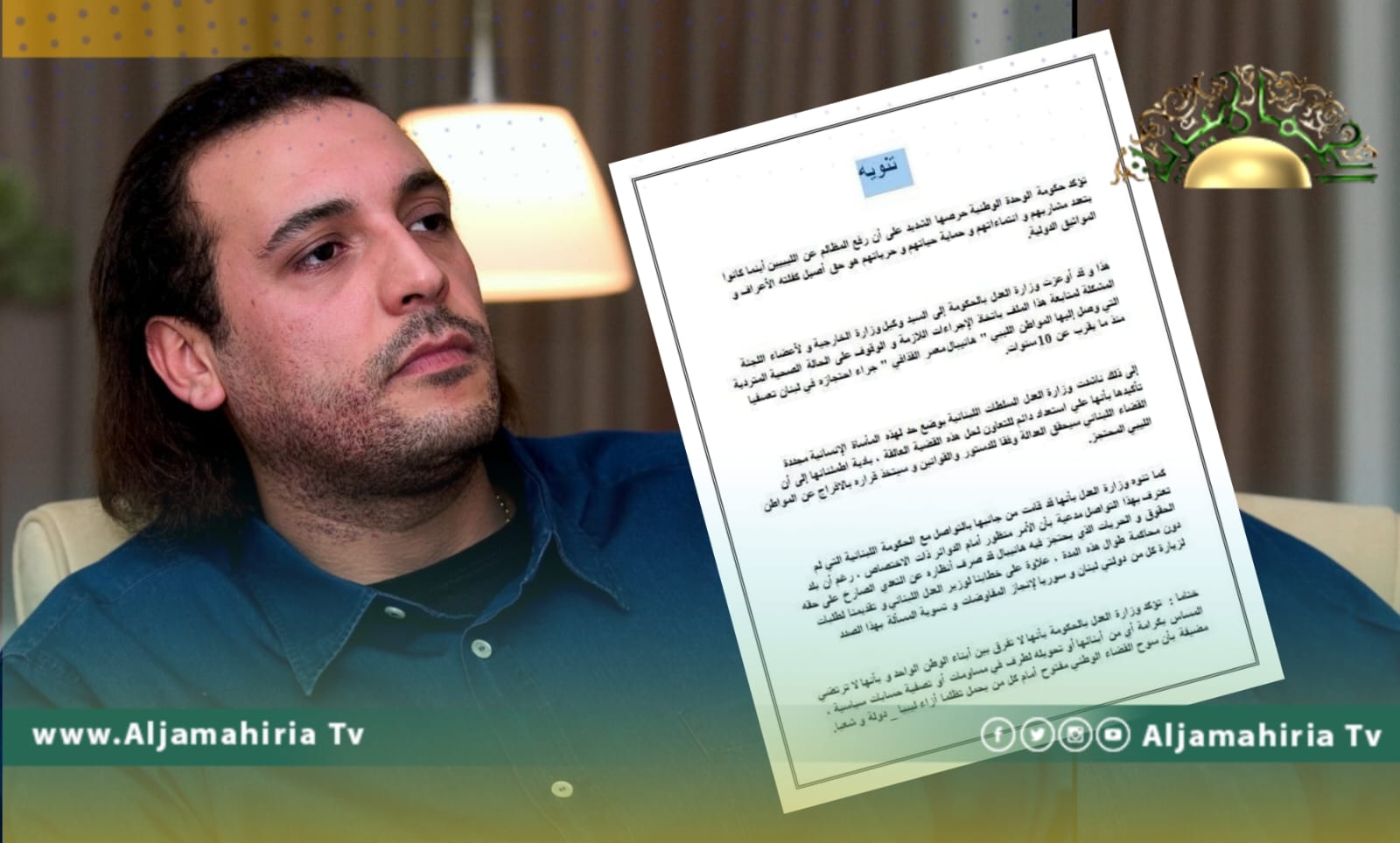 حكومة الوحدة تؤكد تواصلها مع لبنان لحل قضية هانيبال القذافي