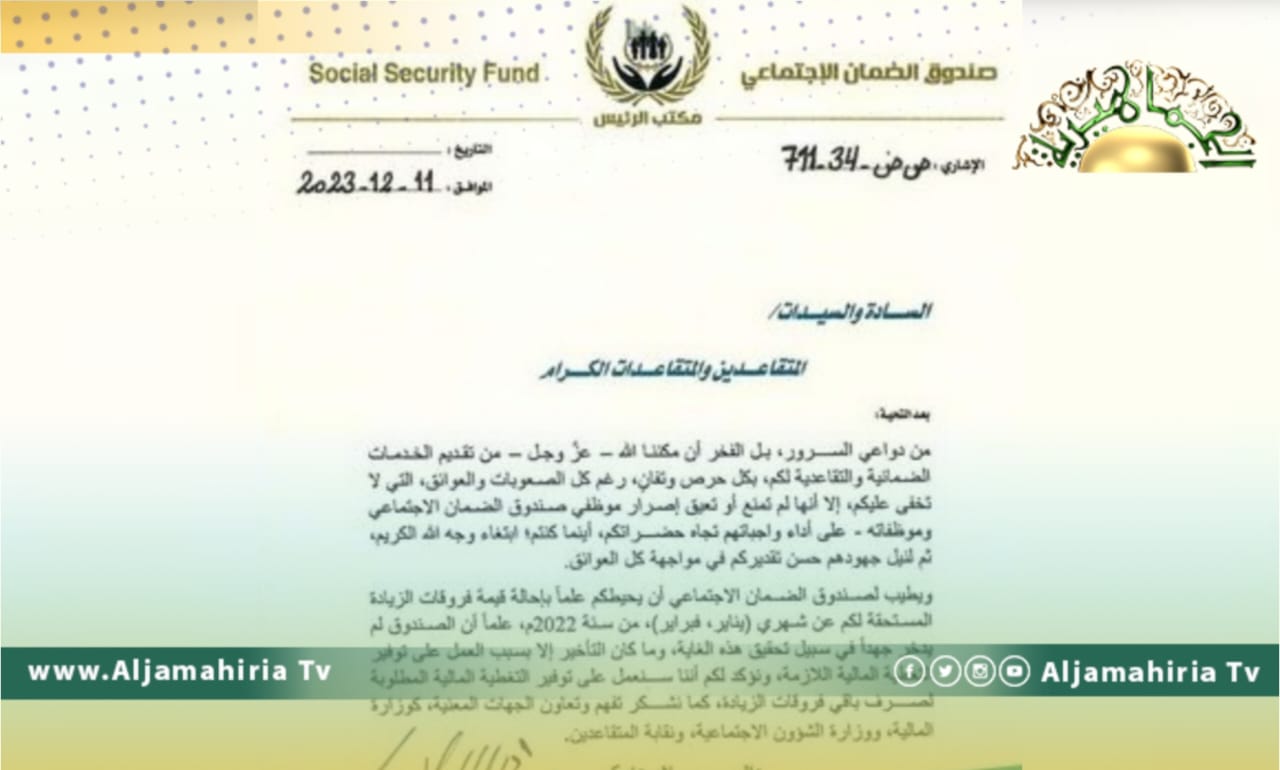وأوضحت إدارة الصندوق، إنه تطمئن شريحة المتقاعدين، بأنها ستعمل على توفير التغطية المالية المطلوبة لصرف باقي فروقات الزيادة.